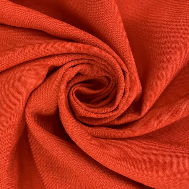 | Don't be fooled. This is a superb imitation of a linen. Bright coral red polyester linen look suiting made in Portugal. Intended for a high end label, they didn't need it all - so we have it. | |