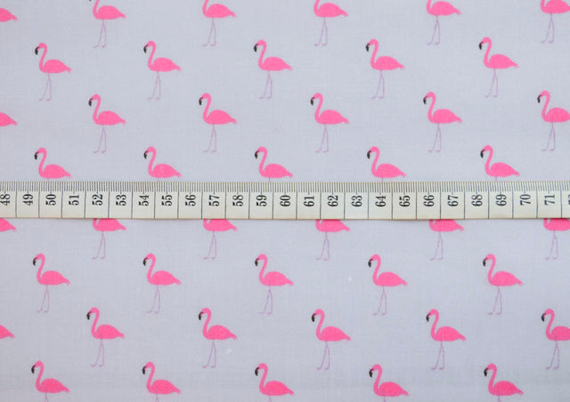 | Here we have a new selection of pretty poly cotton fabrics, this one is 110cm wide with an all over pink flamingo print on a grey background. These fabrics are perfect for dresses, shirts, & crafts. | |