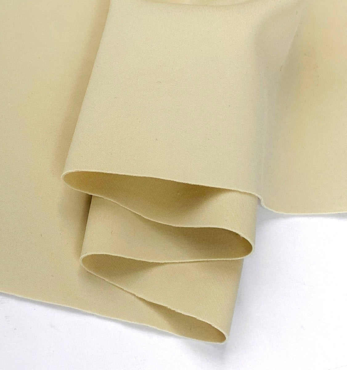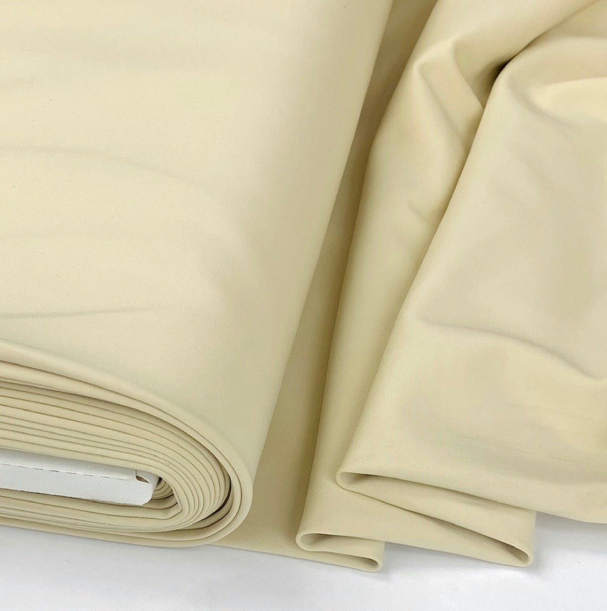 | Ridiculously good scuba fabric in a very pale coffee cream flesh colour. Made from 85% polyamide and 15% elastane this is super stretchy. This is a fine densely knitted scuba at less than 1mm thick. It will be good for making an undergarment to hold it all in. | |