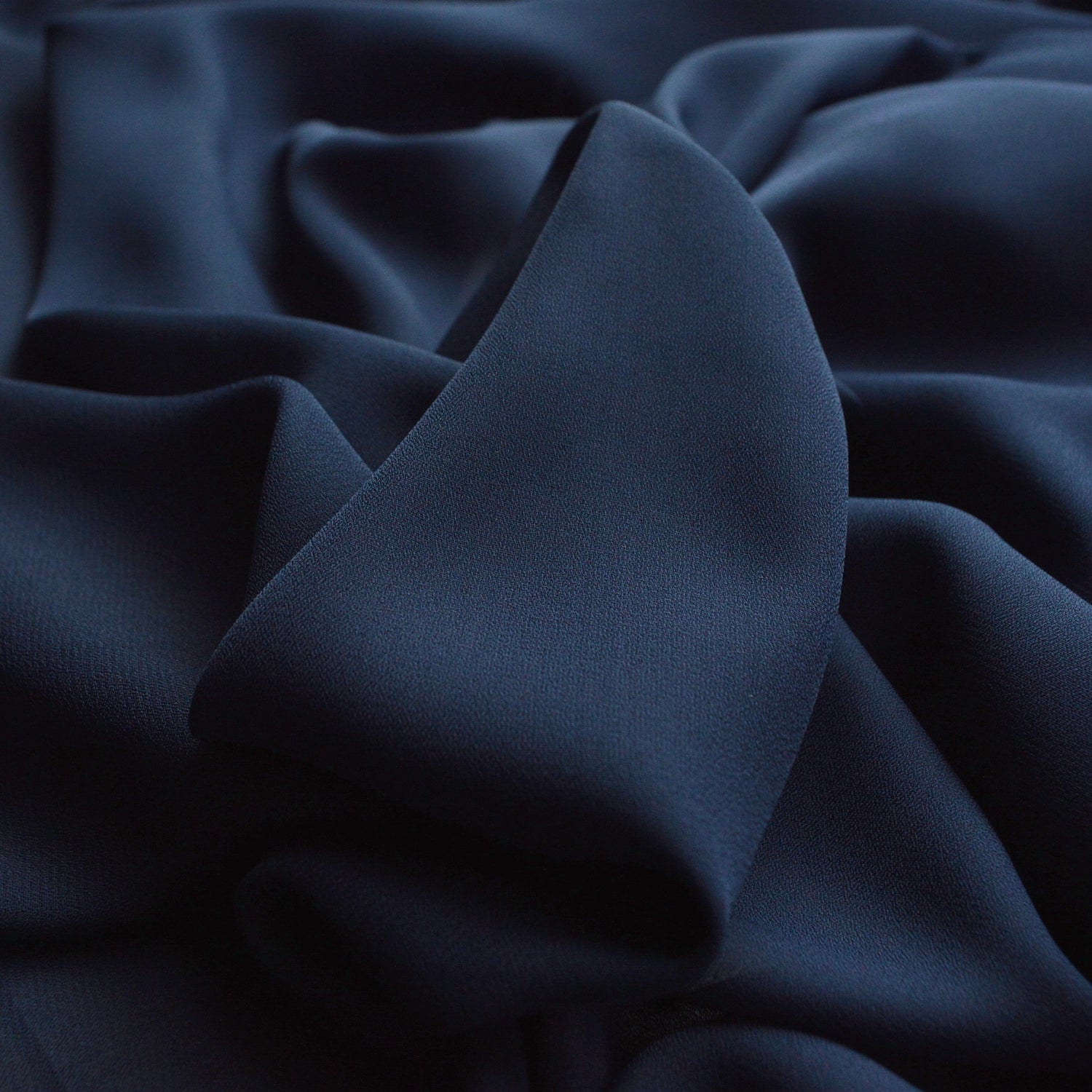 150cm wide gorgeous, high-quality polyester georgette dress fabric in a rich navy blue hue, excellent for skirts, blouses and special occassion wear!