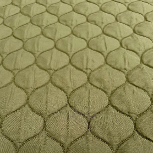 An exquisite 140cm quilted stretch fabric in khaki green, made from a blend of 98% polyester and 2% elastane. Featuring a chic quilted onion design, this fabric offers a slight stretch for comfort and flexibility.
