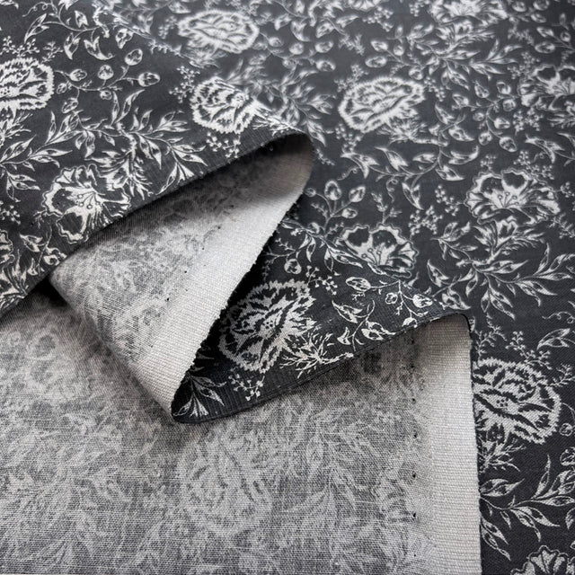 160cm wide, exquisite polycotton fabric with a vintage floral design in elegant shades of grey. This high-quality budget-friendly fabric is perfect for dressmaking, shirts, home furnishing, and decor projects.