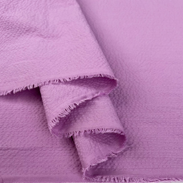 100% cotton Austrian seersucker fabric in a beautiful pinky purple shade. This lightweight fabric is perfect for crafting breezy summer garments. Its unique textured surface offers a stylish touch while ensuring comfort and breathability. Ideal for dresses, shirts, and skirts, this seersucker fabric will keep you cool and chic all season long.