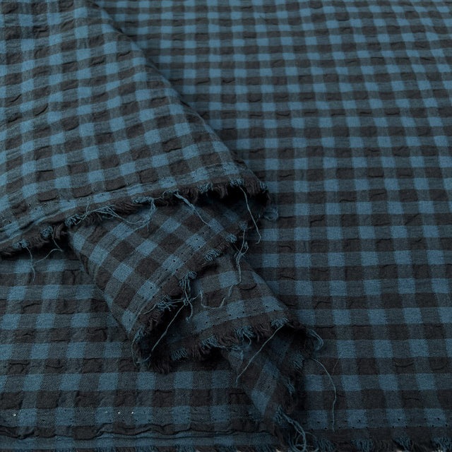 Textured seersucker check in teal and black – classic yet contemporary.