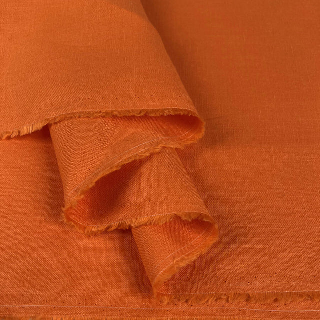 A vibrant 100% linen fabric, 145cm wide and medium-weight at 150gsm. Made for a well-known American designer, this cloth comes in a bold orange shade that radiates energy and confidence. With its natural slub texture, breathable quality, and crisp finish, it’s ideal for timeless summer garments that make a statement.