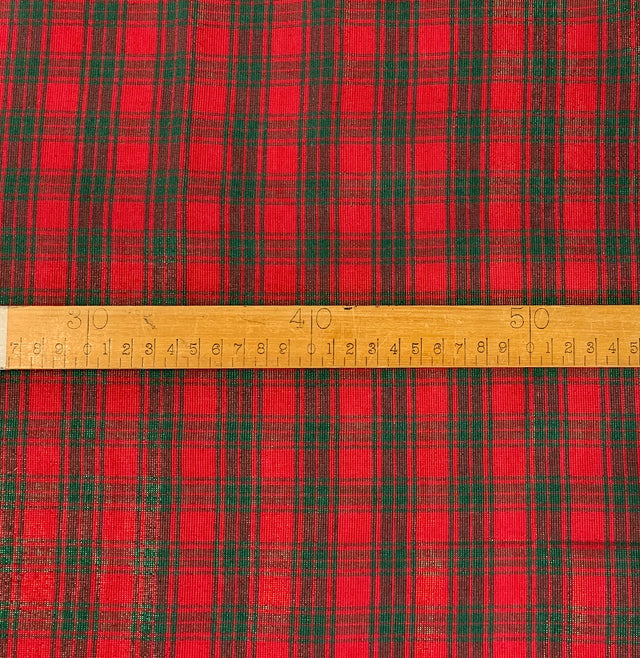 | Red tartan check metallic cotton lurex craft fabric, glittery fabric for crafty projects especially at Christmas time | |