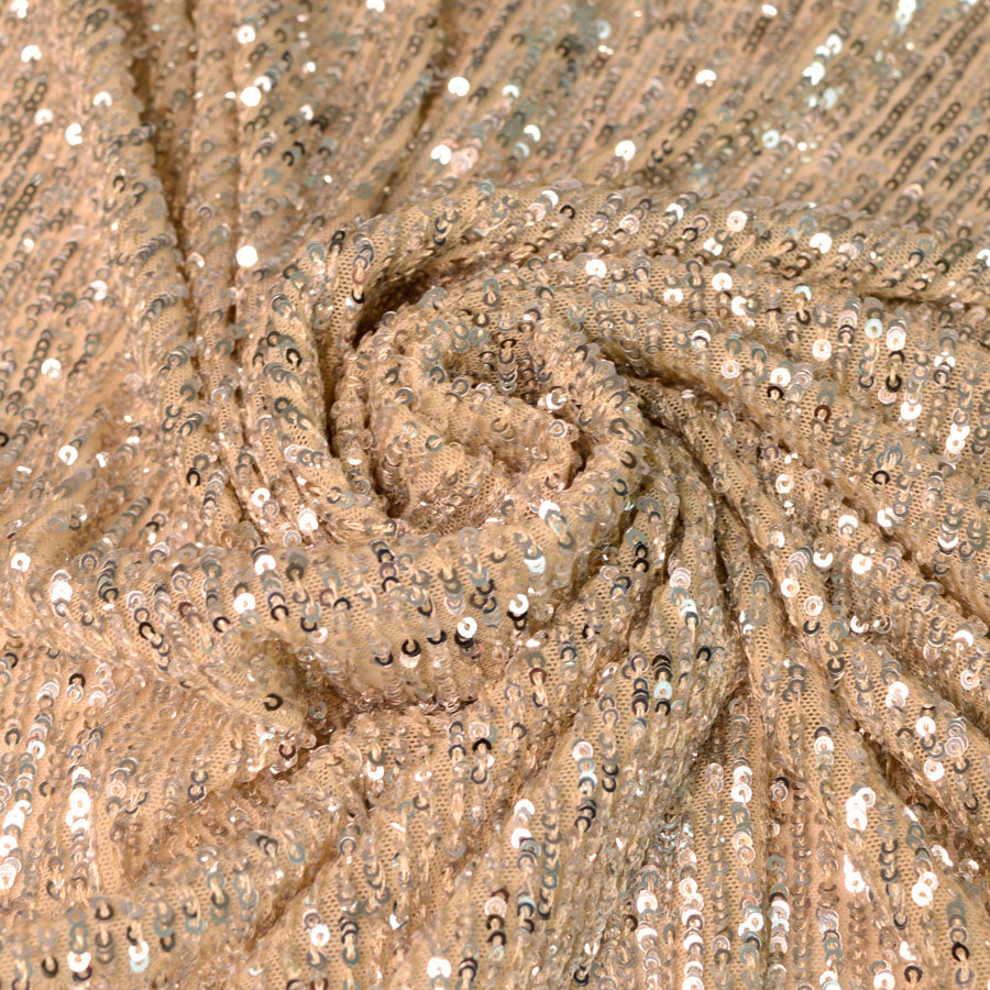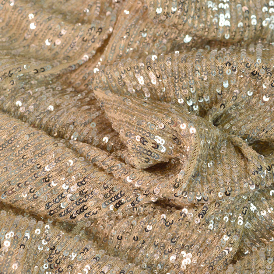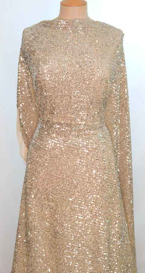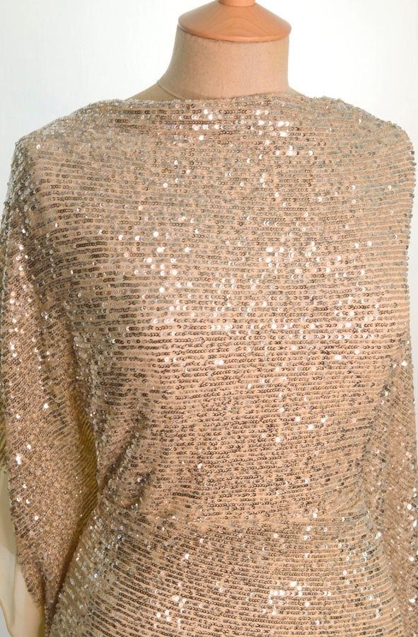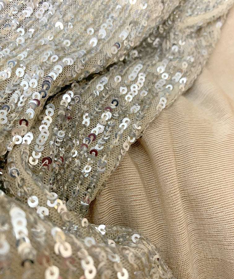 The ultimate combination for comfy glamour, sequined knitted jersey fabric in silver and beige!