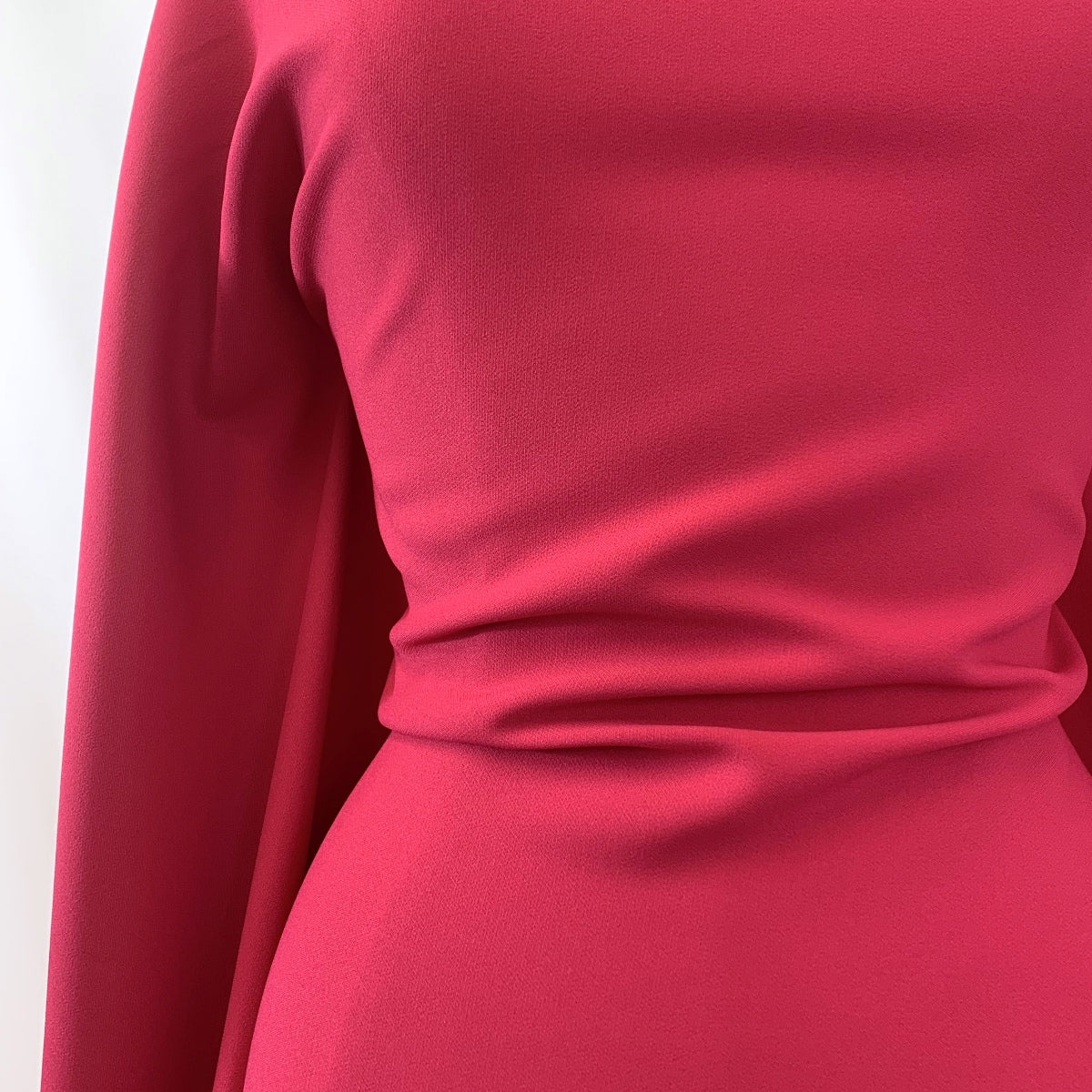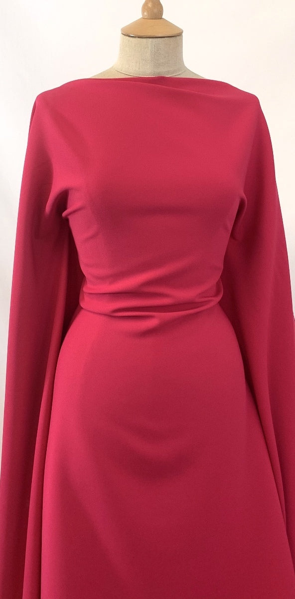This is a mildly stretchy woven polyester elastane trousering in bright cerise pink – ideal for holding it all together or not (if that’s how you fancy it!) – very much a good looking cloth.