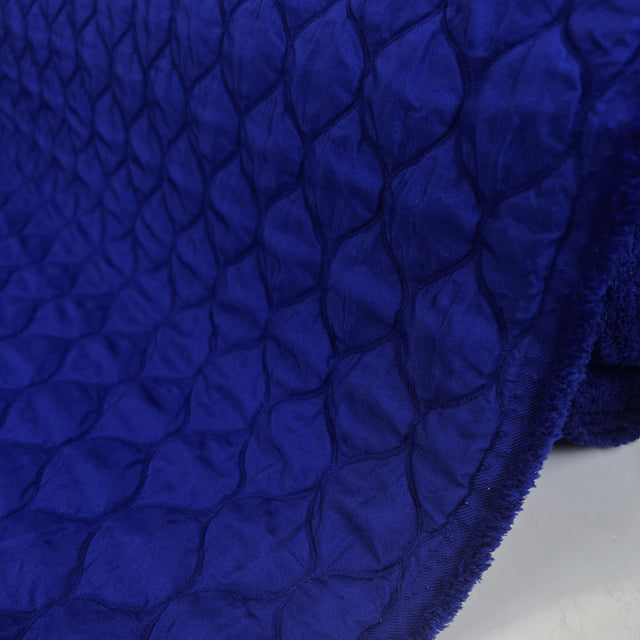 An exquisite 140cm quilted stretch fabric in royal blue, made from a blend of 98% polyester and 2% elastane. Featuring a chic quilted onion design, this fabric offers a slight stretch for comfort and flexibility.
