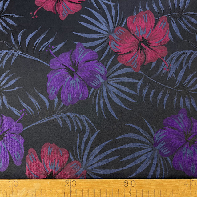 Dressmaking jacquard brocade, the main body of the fabric is charcoal navy with a purple floral and leaf design! This cloth is perfect for elegant dresses, evening coats and sophisticated skirts!