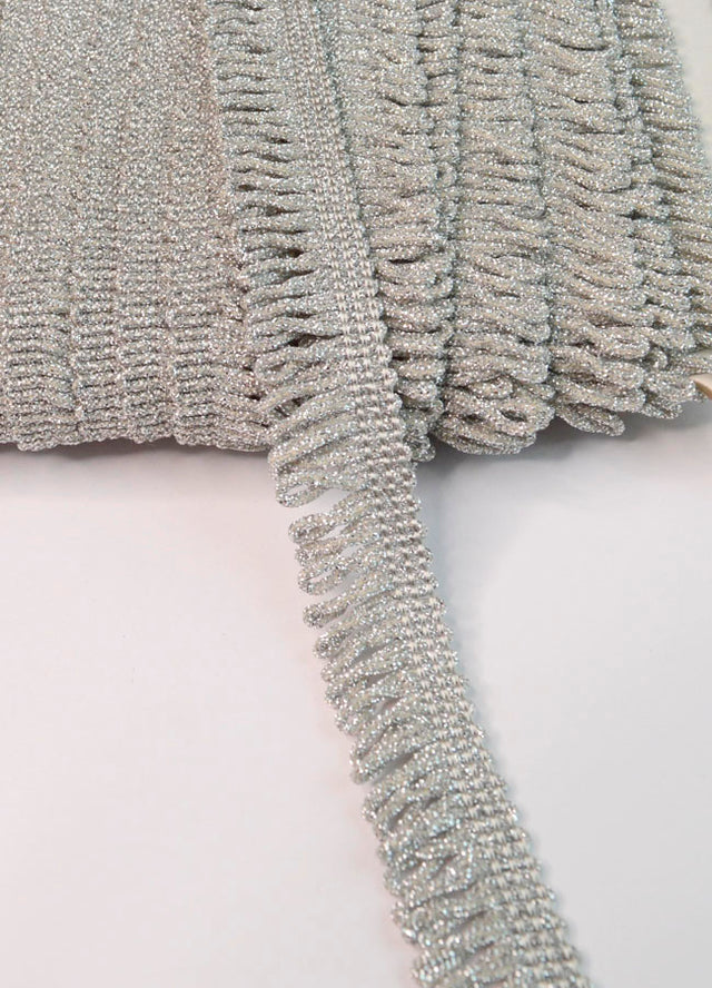 Silver Lurex Fringe Braid Trim Edging (20mm) is backordered and will ship as soon as it is back in stock.