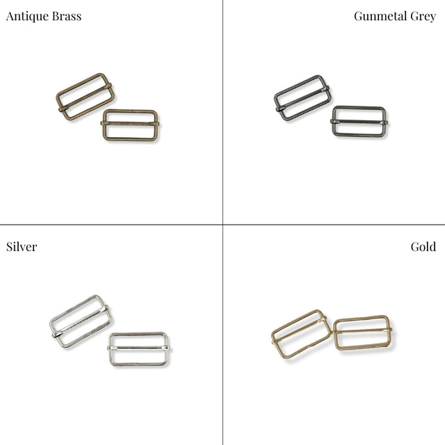 Pack of 2 rectangular metal strap sliders - the perfect addition to your bag making supplies! These sliders are made from high-quality metal to ensure durability and strength, making them ideal for use with webbing to create sturdy bag straps.
