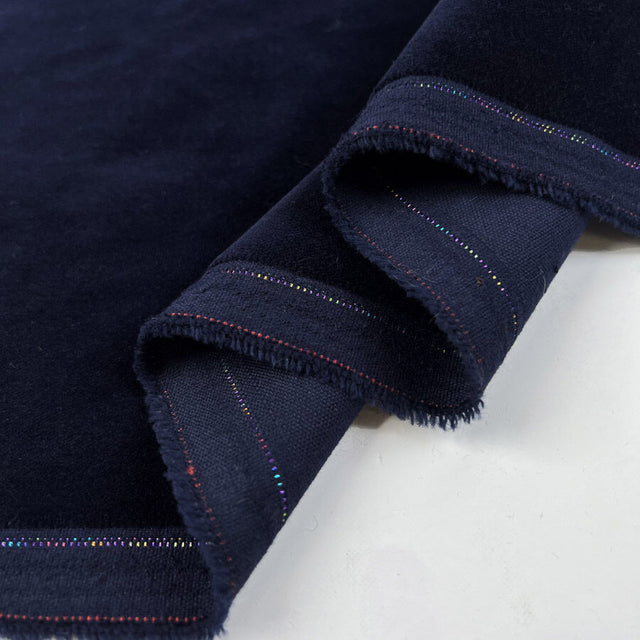 130cm wide, ex-designer velvet fabric in navy, crafted from 100% cotton, it offers a soft, rich texture with a beautiful drape.