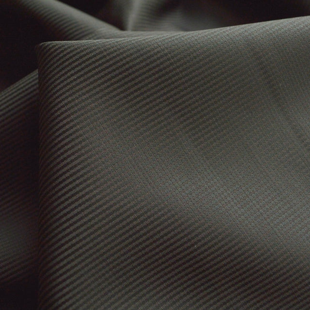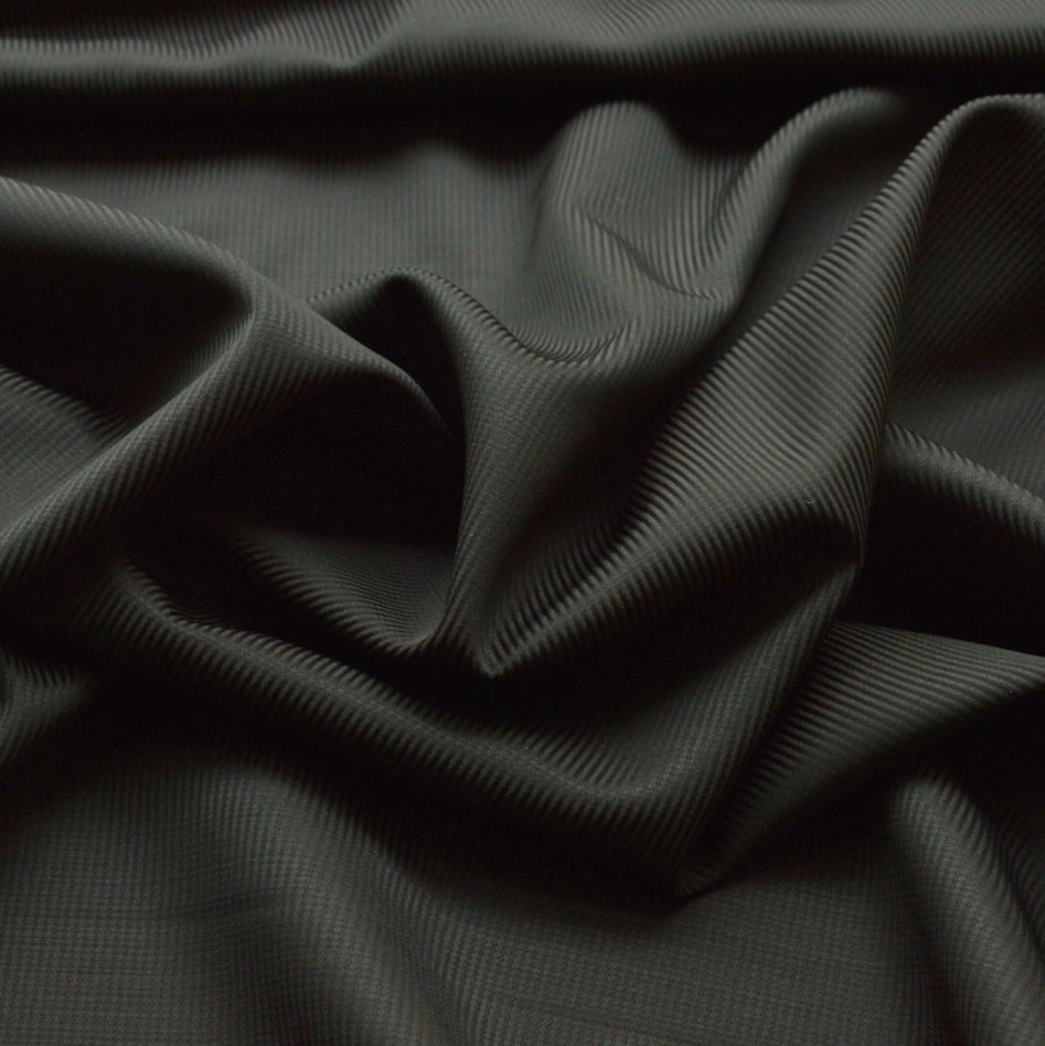 | Very dark brown cloth made of viscose and cotton, the finest of self-colour stripe weaves, very soft without being squishy, regains its poise after a bit of a battering and with its slightly satinised surface has a capacity for greatness, all sounds a bit far-fetched doesn’t it, super long dress fabric or splendid in jackets. 155cm wide. Great as a lining for coats and jackets. | |