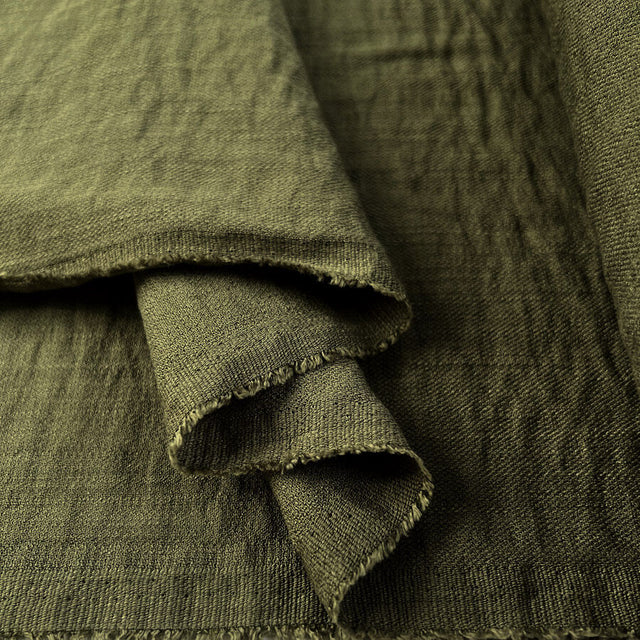 150cm wide, 81% viscose and 19% nylon woven fabric in olive green, with a soft drape, breathable texture and a touch of structure. OEKO-TEX Standard 100 certified. This beautifully balanced fabric combines the natural fluidity of viscose with the strength and shape-retention of nylon – ideal for stylish, wearable garments that move with ease but hold their shape.