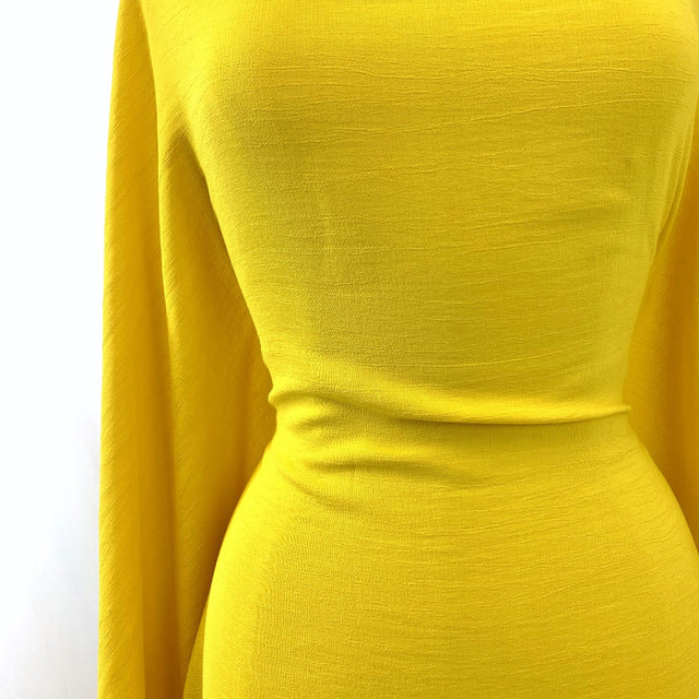 Bright yellow lightweight viscose crepe with a very subtle crinkle finish in the weave. |