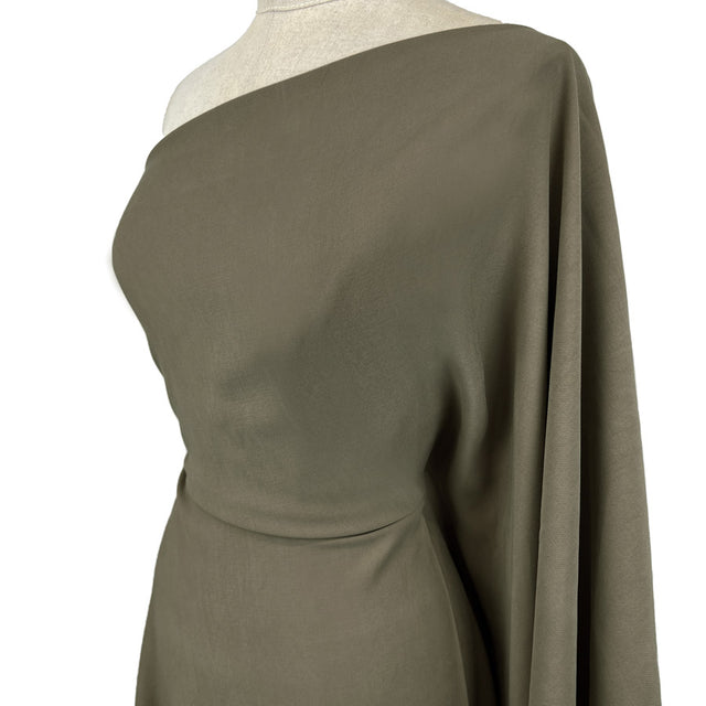 This 143cm wide viscose tencel finish fabric in olive green is the ideal choice for creating stunning blouses, shirts, trousers, and dresses.