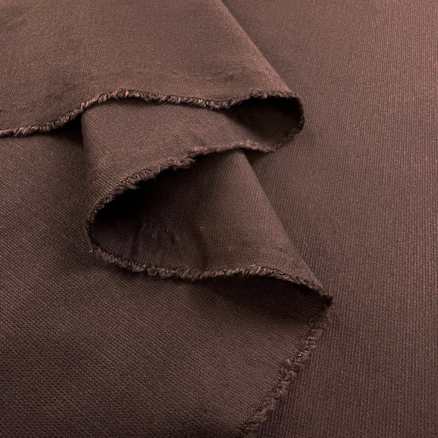 This high quality knitted 145cm wide, 320gsm Ponte Roma fabric has rich chocolate brown colour. With plenty of viscose to give it a soft hand, the nylon providing sturdiness and with a hint of elastane that gives the cloth a subtle stretch and great recovery.