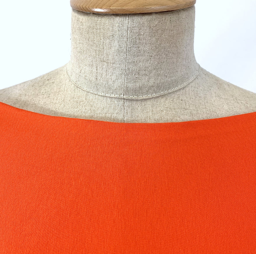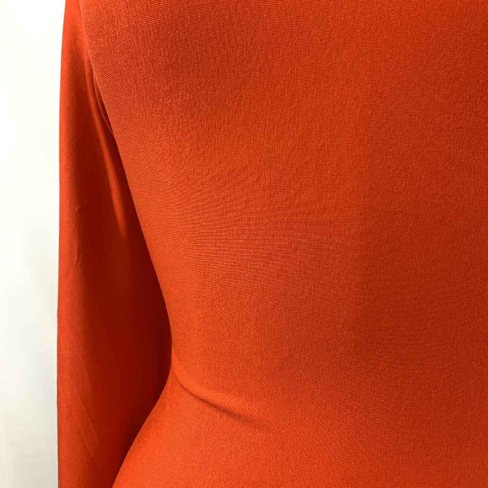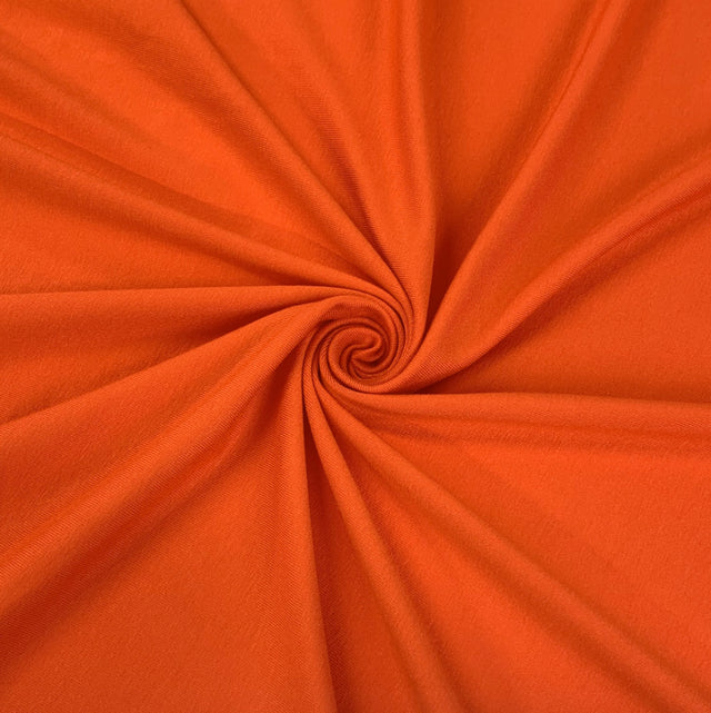Viscose/Lycra knitted lightweight jersey dress fabric in bright orange. Made with viscose which, give you cool touch in these hot days.