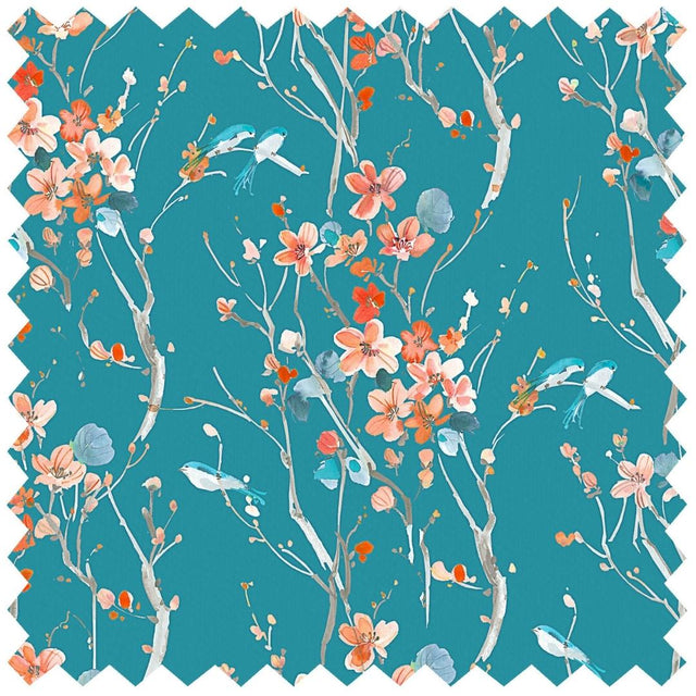 The Voyage cotton poplin fabric is slightly heavier than a standard poplin at 130 gsm with a 205 thread count. The beautiful design features budding flowers amongst characterful birds in an array of colours such as blue, red and peach. Reminiscent of Japanese ink drawings.