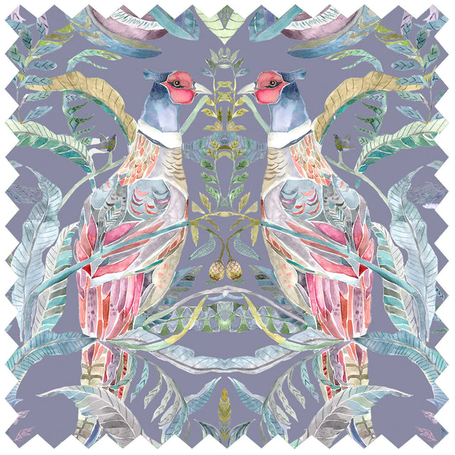 The voyage dressmaking cotton fabric weighs 156 GSM with a 120 thread count. This stunning watercolour design features a striking mirrored pheasant design in a gorgeous array of complimentary colours such as purple, green, red and yellow.