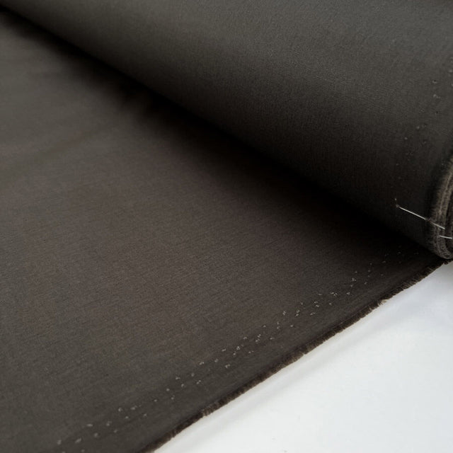 This dark grey waxed cotton fabric, ‘Bonneville 6’, is a true classic for timeless outerwear and accessories. At 153cm wide and 275gsm, it’s a durable midweight cloth with a soft touch and matt finish. Designed to develop character with age, each piece made in this fabric tells its own story, gaining a beautifully worn look the more it’s used. Water-resistant yet breathable, it offers protection against the elements without compromising comfort. Apparel and accessories made with Bonneville wax must be lined using fabric treated with an oil-resistant finish.