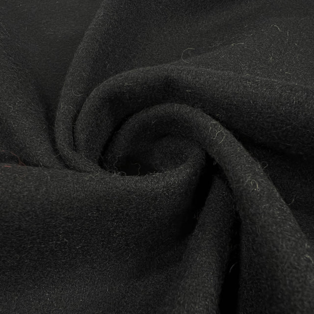 Our 157cm wide, British wool coating fabric in plain black is excellent for jackets, dressmaking or suits!