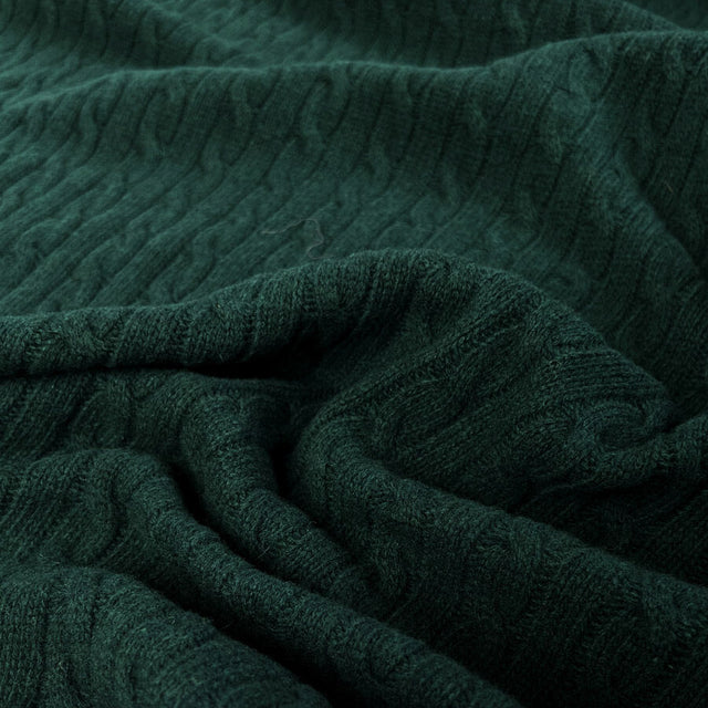 Our 100% lambswool cable-knit fabric has been lovingly produced in Italy by a prestigious family-run firm. Renowned for their exceptional quality, this small factory is one of the best around. This fabric features a chunky texture in a versatile, bottle green hue, ideal for creating cosy sweaters, cardigans and more.