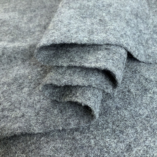 150cm wide, absolutely glorious 100% boiled wool cloth with a silver grey hue, made from Australian virgin wool. At 385g m2 this is a heavy boiled wool fabric, perfect for coats, cardigans, jackets and a warm winter skirts.