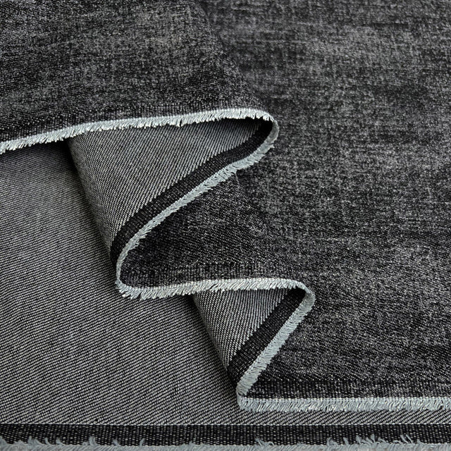 Classic with a modern edge, this black washed denim has a soft hand and subtly weathered look—perfect for everyday pieces with character. Woven from 90% cotton and 10% polyester, it’s strong and comfortable. At 162cm wide and 300gsm, this mid-to-heavy weight denim is ideal for jeans, jackets, skirts, dungarees, and structured dresses.