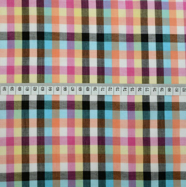 Cotton voile, as fine as you can get, woven check shirting in cerise, white, very pale yellow, black and turquoise, truly delightful and feather light. |