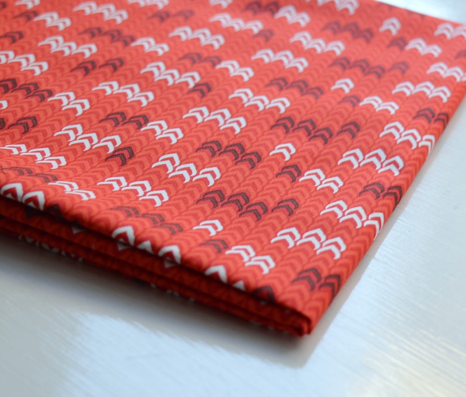 Anthology is an American brand known for it's dedication to quality. From the Desert Daydreams range this fabric showcases white, black and orange 'links' on a red base, with an almost chevron effect. |