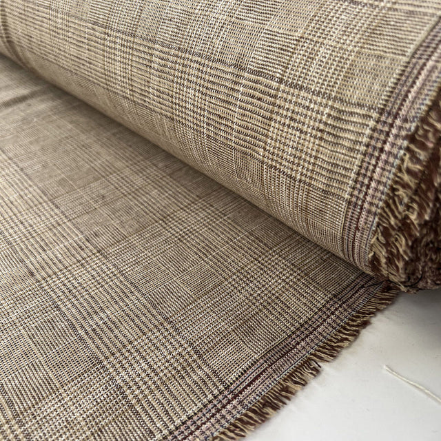 A beautiful 150cm wide linen-viscose blend fabric with a classic beige check. Woven from 55% linen and 45% viscose, this fabric combines the natural texture and breathability of linen with the smoothness and drape of viscose. It’s lightweight with a soft, structured feel—ideal for warm-weather tailoring and relaxed silhouettes.