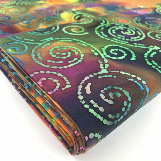 | Hand-dyed and hand-printed Batik cotton poplin fabric in an array colours overprinted with a hand-printed spiral design. Soft and easy-to-sew it is the perfect fabric for dressmaking and craft projects. Each one of the batik fabrics is handmade so the pattern and colour may vary slightly over the piece. *There may be some surface dye run initially, please wash this on its own before you make it up and then wash with similar colours thereafter.* | |