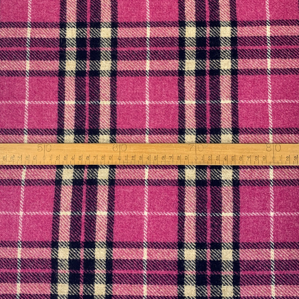 Made for Hobbs Autumn Winter collection, due to the pandemic we have the surplus stock of this design. Stunning British made wool tweed in a pink, navy and beige check. They made it into pinafores but this would work equally well in a jacket or skirt.
