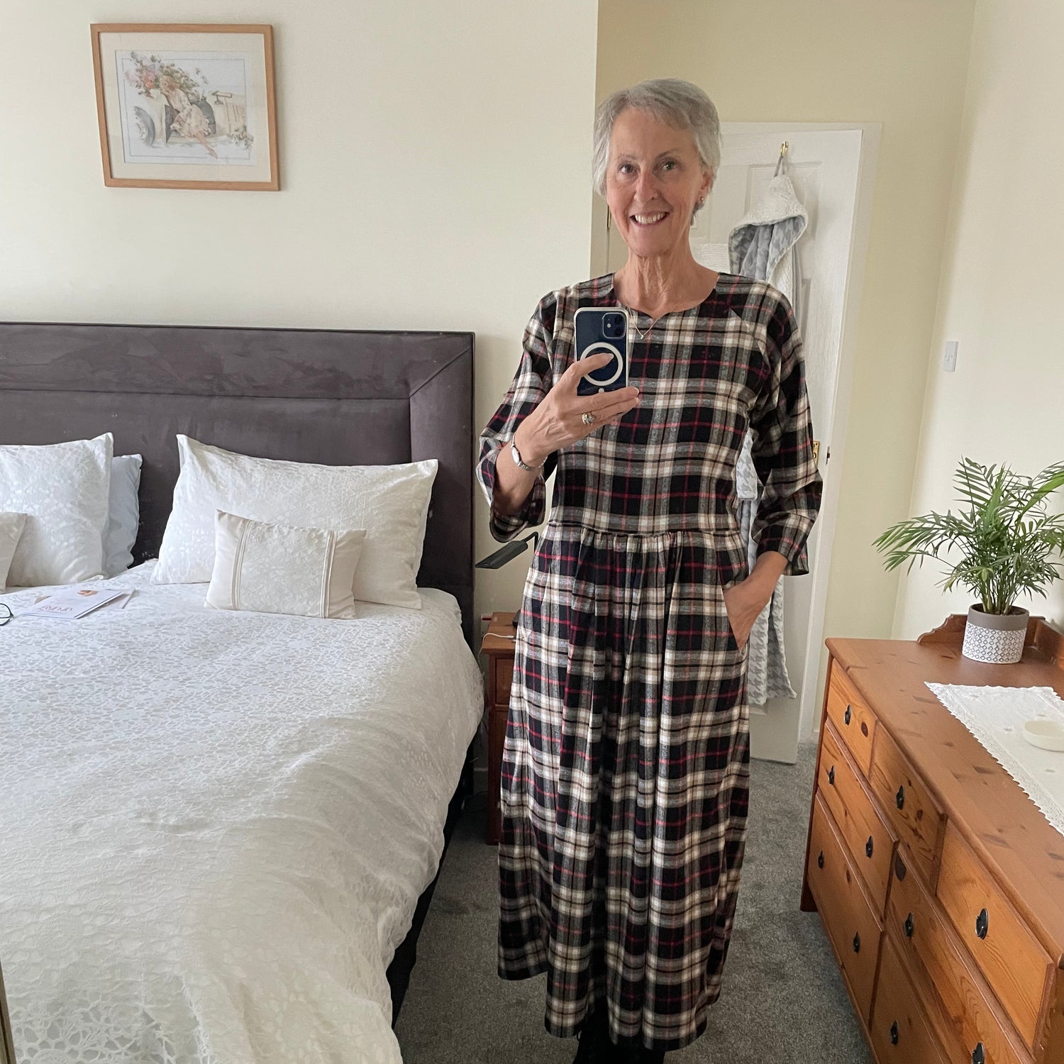 This beautifully soft brushed cotton fabric features an eye-catching check pattern in yellow, beige and white, with a single line overcheck in red on a black ground. With a cosy and lightweight (130gsm) feel, this material feels lovely against the skin and is a delight to sew.
