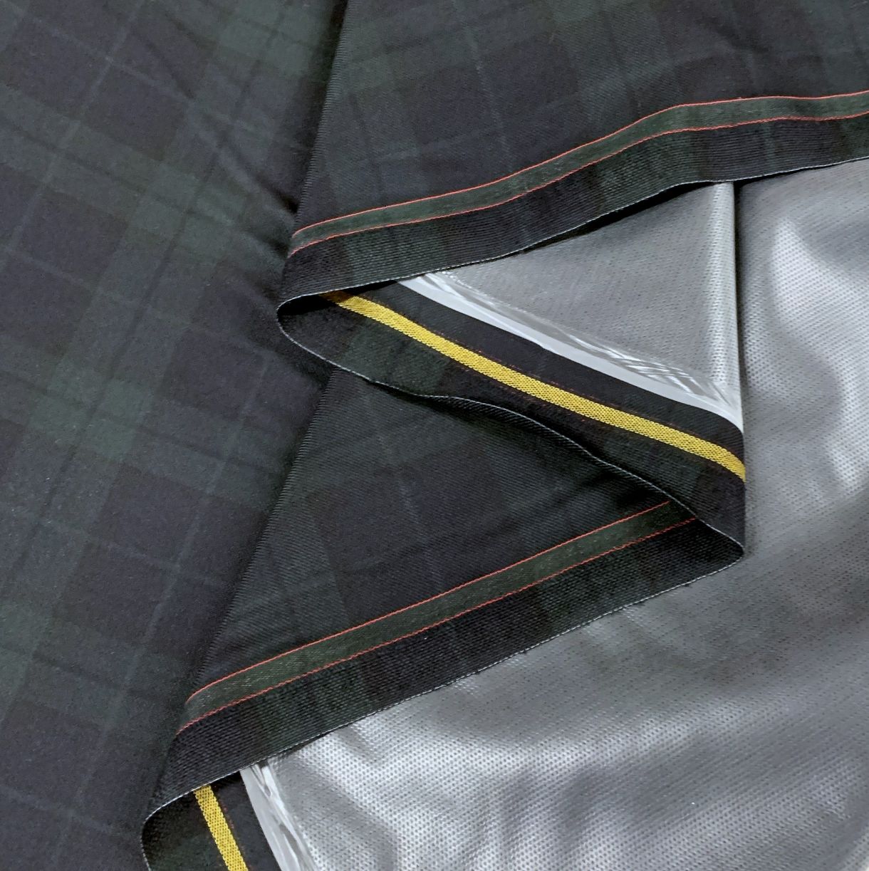 Woven in Italy by the renowned Loro Piana, this fine wool-suiting fabric features a sophisticated dark navy and green check pattern face. What makes this cloth even more interesting is its water-resistant membrane backing, making it a practical choice for high-quality outerwear garments. Perfect for fashioning tailored suits, jackets and coats that will ensure you stay stylish and protected, regardless of the weather - excellent golf attire material!