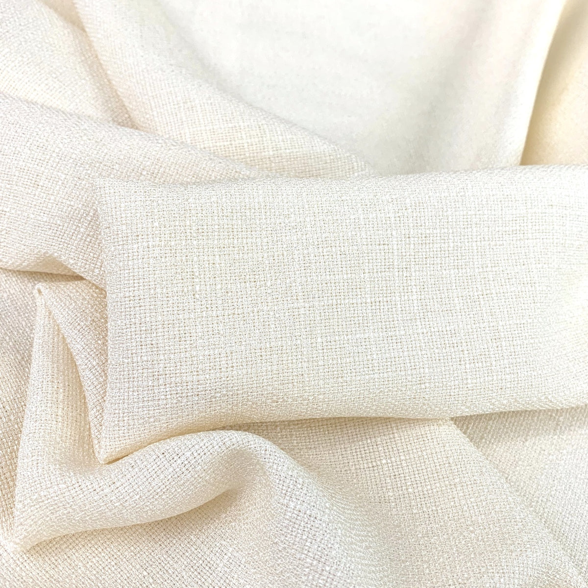 A beautifully textured 145cm wide, 100% polyester fabric in cream designed with a subtle linen-look finish. Weighing 200gsm, it features slightly thicker yarns and the occasional slub for a natural, woven feel - offering the aesthetic of linen with the practicality and easy care of polyester.