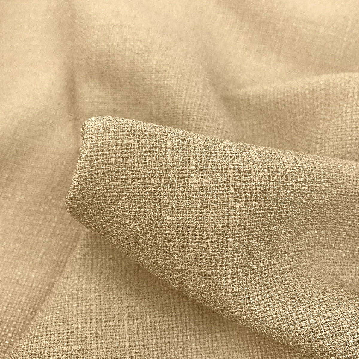 A beautifully textured 145cm wide, 100% polyester fabric in sand designed with a subtle linen-look finish. Weighing 200gsm, it features slightly thicker yarns and the occasional slub for a natural, woven feel - offering the aesthetic of linen with the practicality and easy care of polyester.