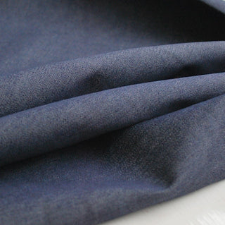 | This is a nice quality lightweight cotton/ polyester denim in a traditional dark blue. | |||
