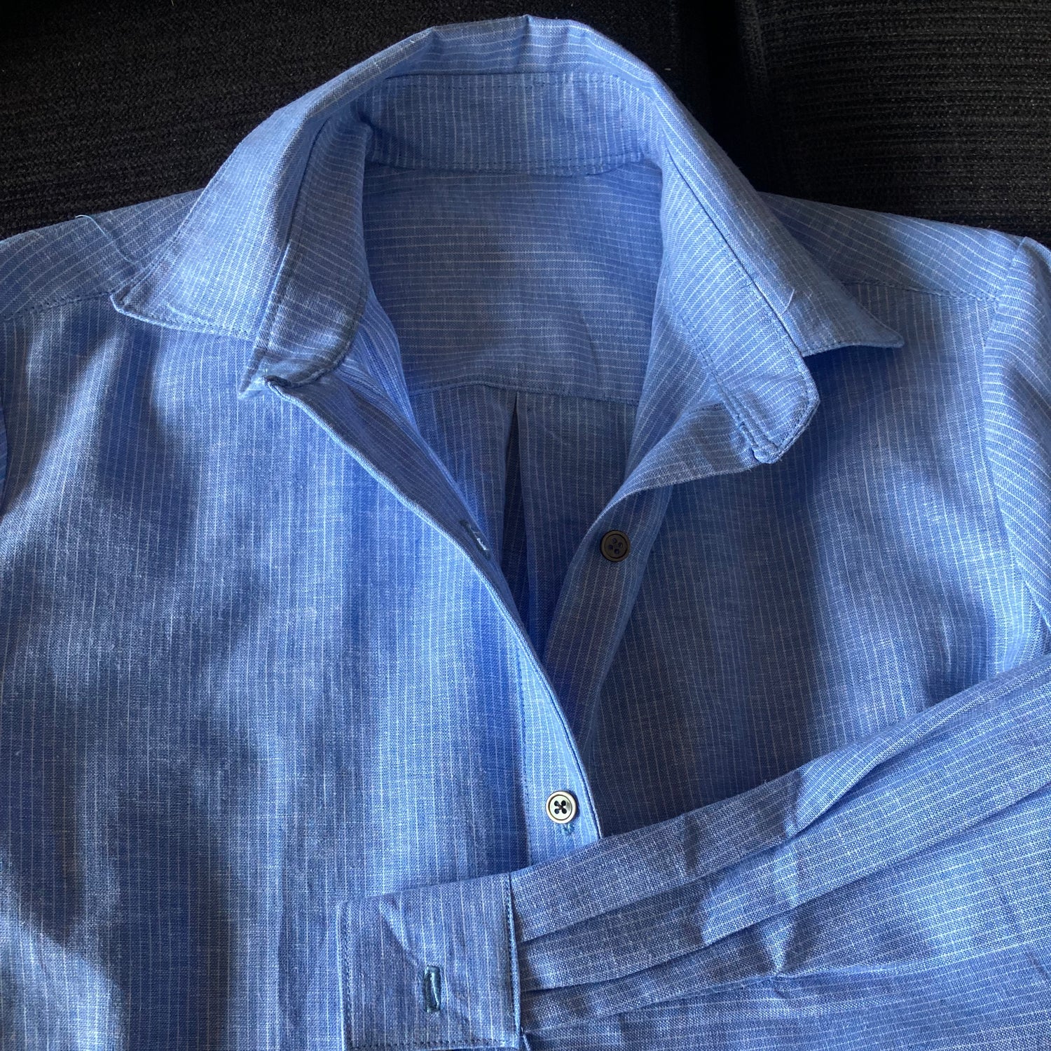 Featuring a pale blue hue and contrasting white pin stripe, this cloth has multi-generational appeal. Hardwearing and fun for kids clothing and lightweight and breathable for holiday attire.