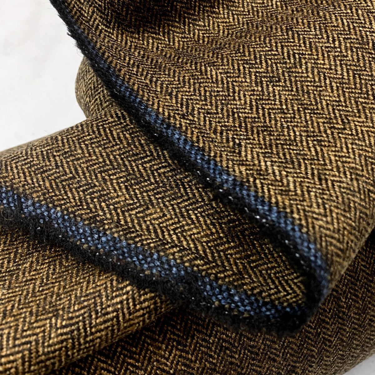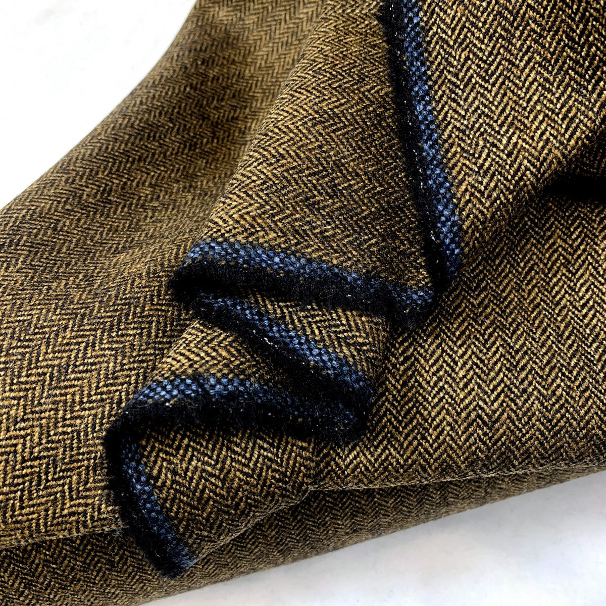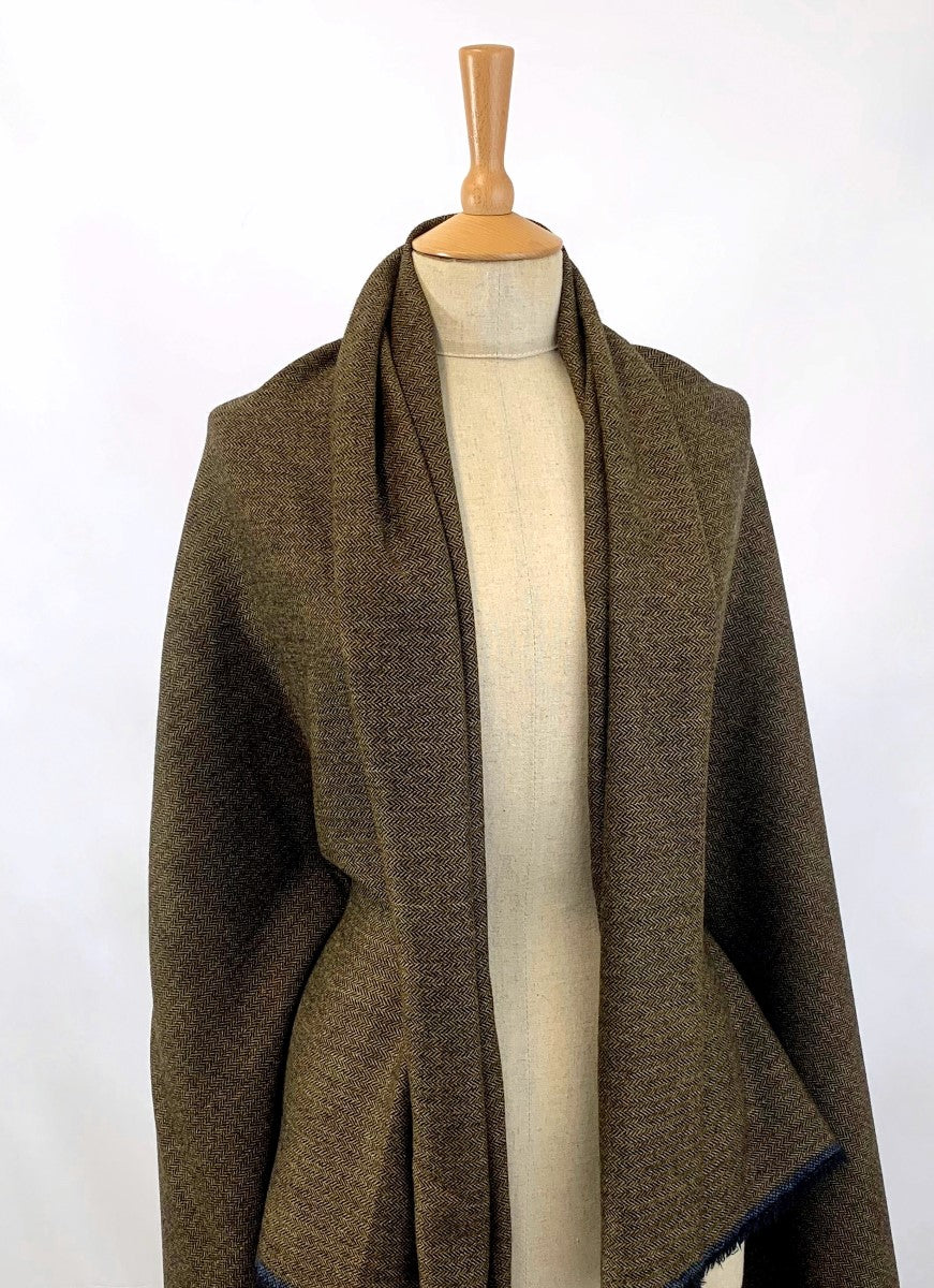 Fine and soft, woollen herringbone tweed in black and tan. Dress it up or down..
