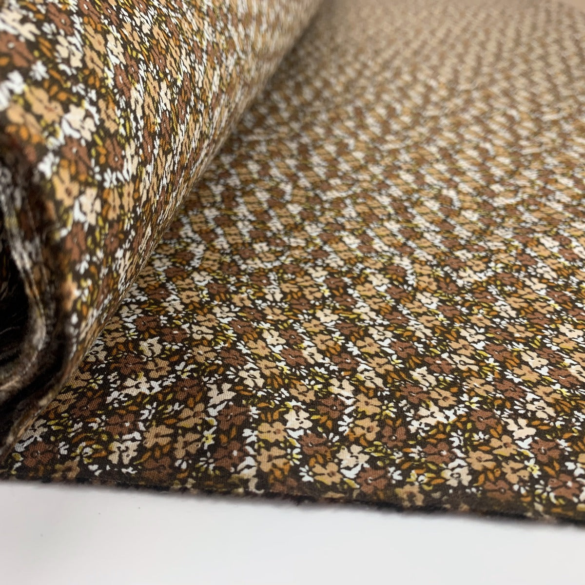 145cm wide Poplin cotton abstract dress fabric in a shades of brown, taupe and white with subtle hints of ochre and orange. A similar quality to our narrower poplin prints range this is a lovely cotton material for making dresses, shirts but is also a good cotton for general craft making too. These are also wider than the poplin prints collection of fabrics. There is something that takes me back to my childhood about this print it is a little bit Hollie Hobby.
