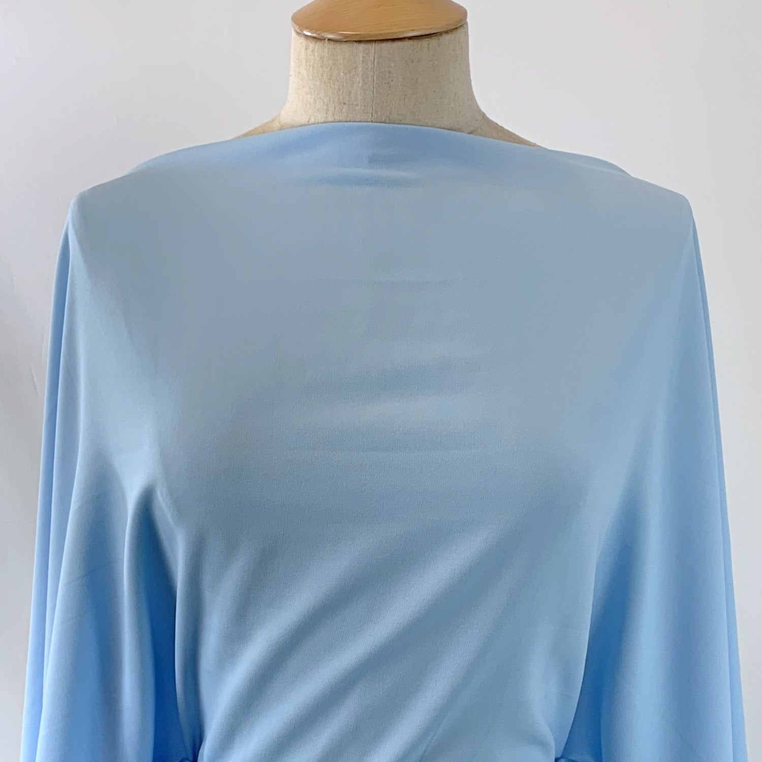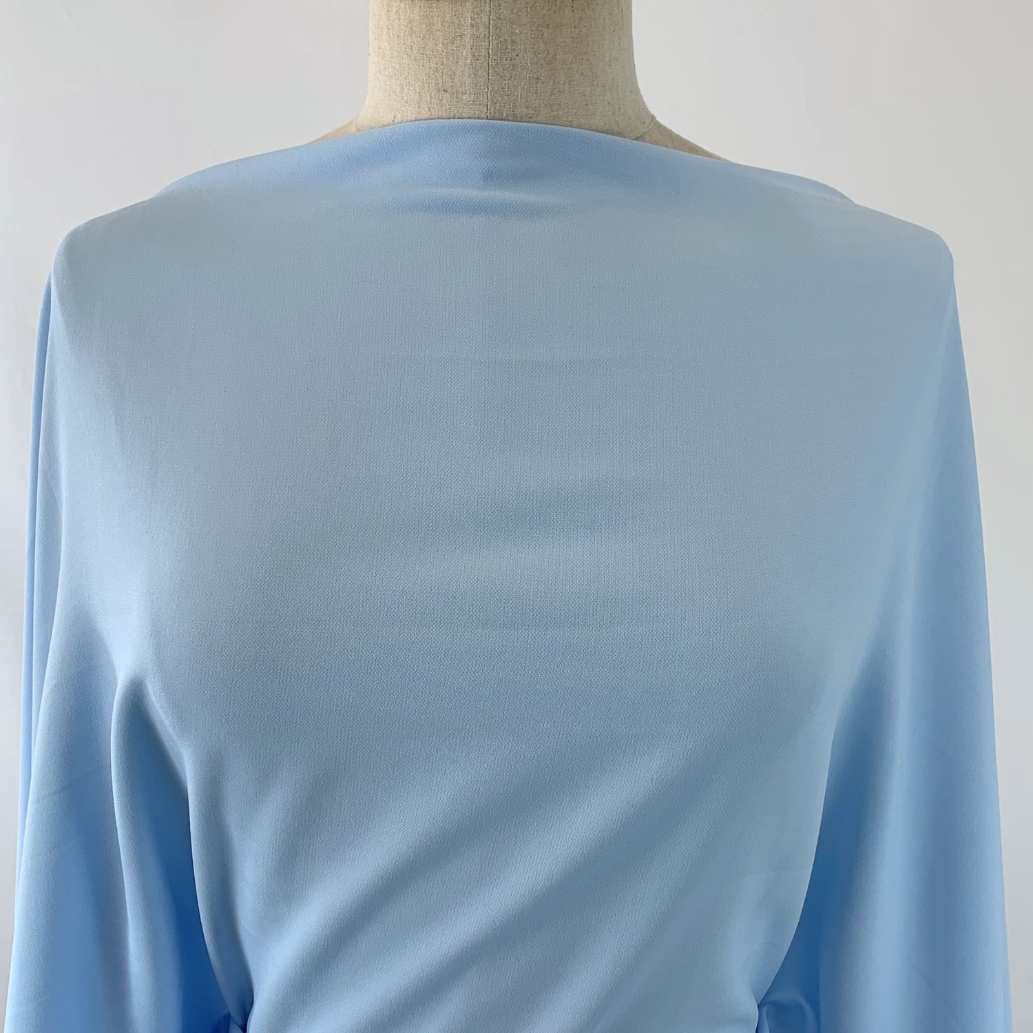 Exquisite smooth French crepe in baby blue with a small amount of elastane, perfect for a brightly coloured blazer and trouser suit.