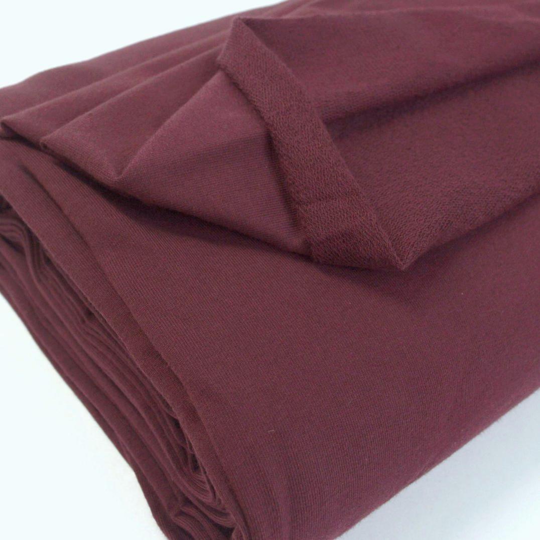 Introducing our 150cm wide, plain French Terry jersey fabric in berry purple, designed with a looped back for added comfort and warmth. Crafted from a blend of 95% cotton and 5% elastane, it offers a comfortable stretch and a snug fit.