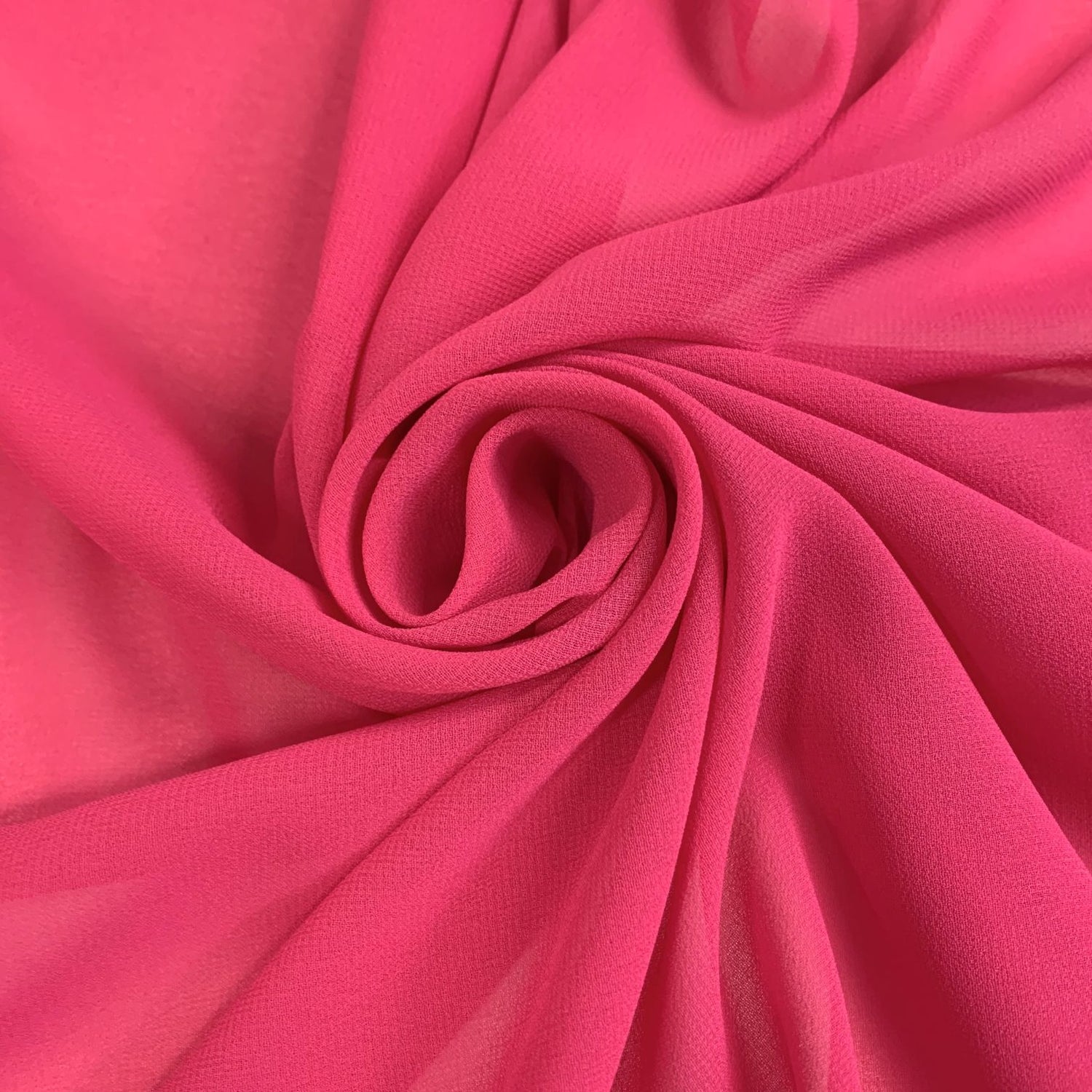 Gorgeous good quality polyester georgette dress fabric in fuchsia, georgette is often used for evening gowns, bridal wear, and special occasions, but is a versatile fabric used for many different cuts of dresses, including a-line, pleated, flare, and wrap dresses. It is also suited for midi dresses and maxi dresses with both long sleeves and short sleeves.