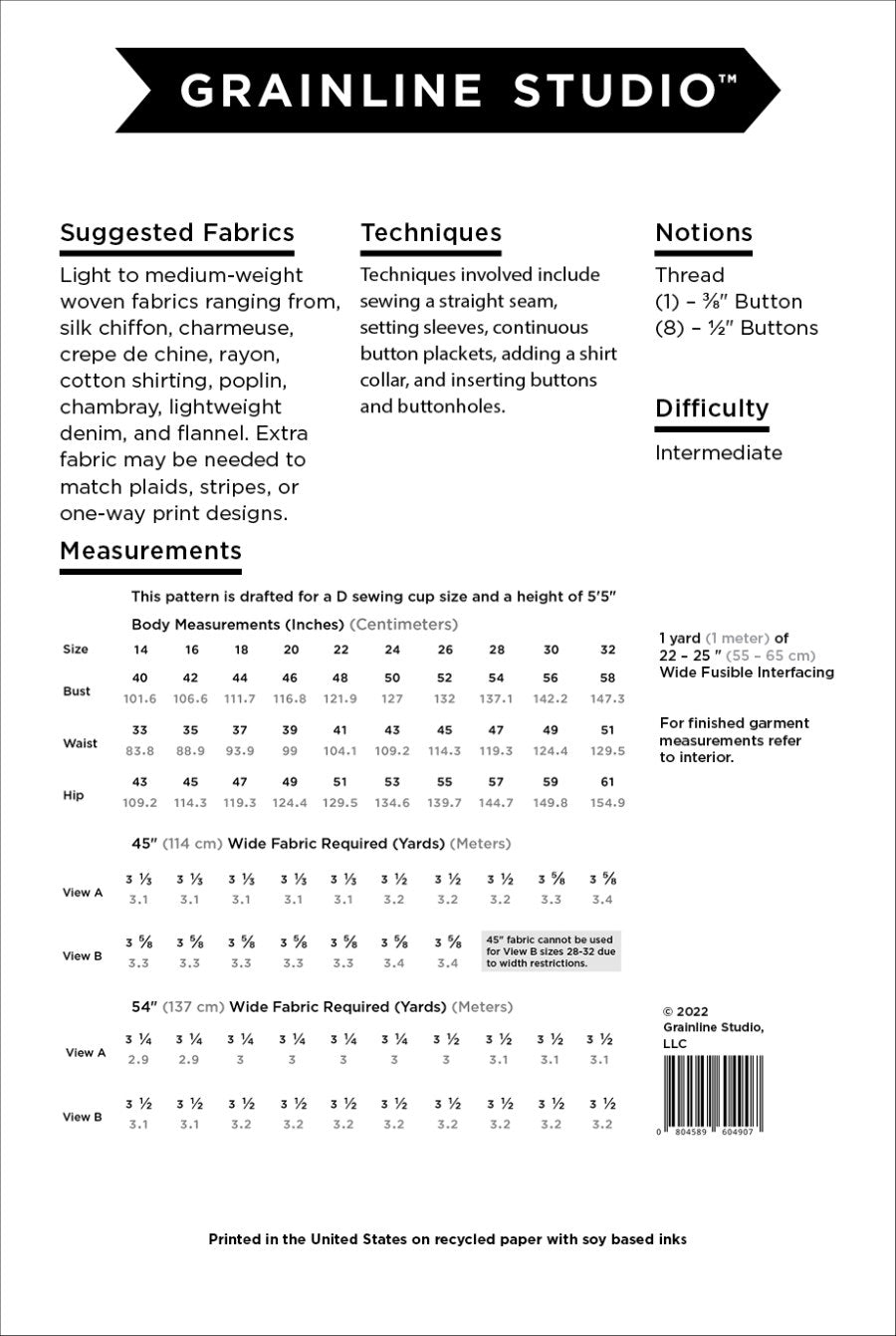 Grainline Studio - Archer Shirt Pattern (US 14-30) is backordered and will ship as soon as it is back in stock.