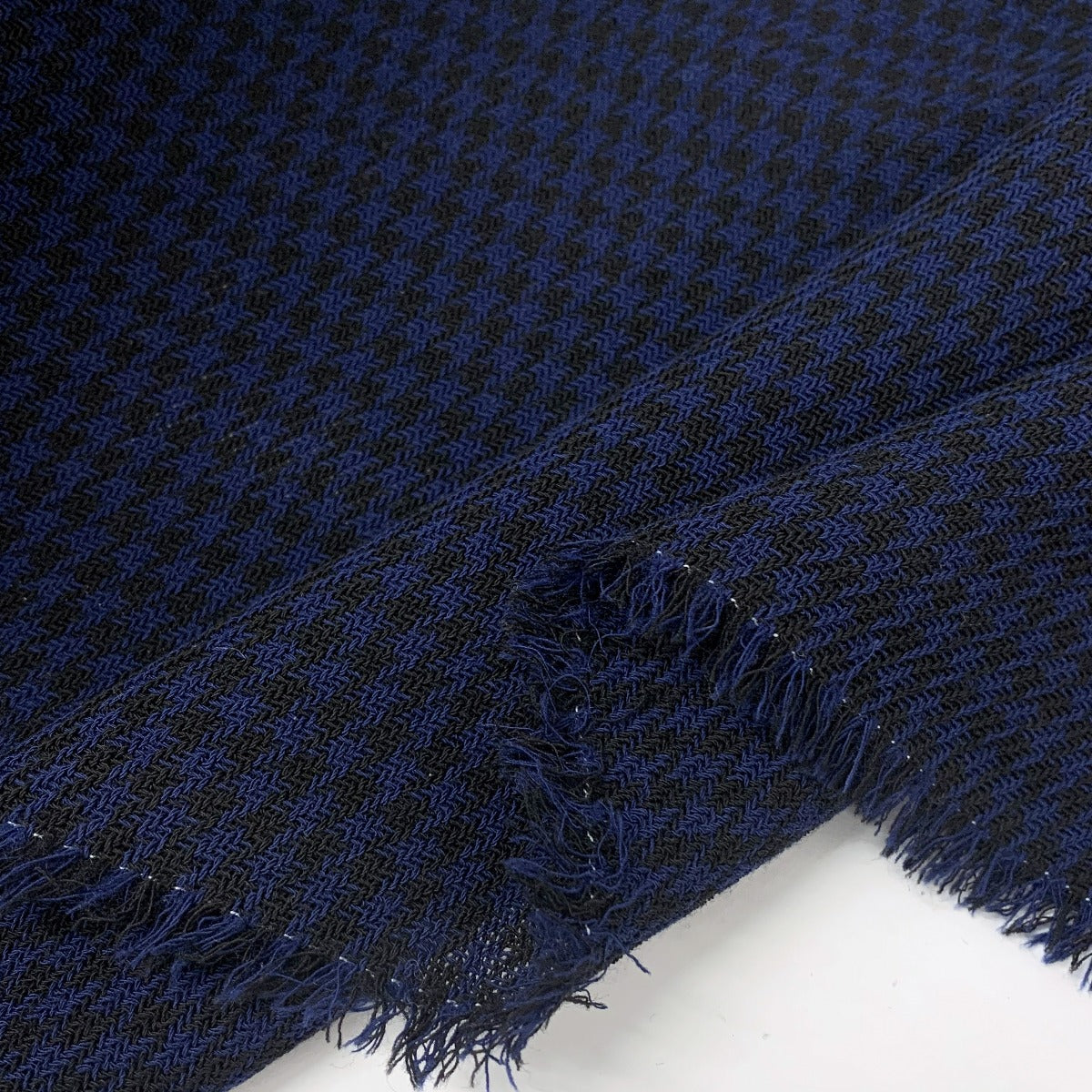Stunning ex-designer wool twill crepe fabric, deadstock from a very expensive label. This had a rough feel to it and what you call a reasonably loose weave. It comes in black and royal houndstooth and will be wonderful in a dress, loose style jacket or trousers.