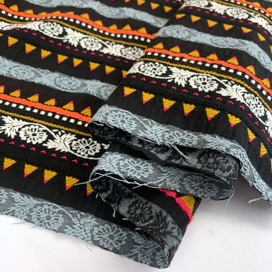 Let the colours do the talking with a spectrum of black, amber akin to ochre, soft grey, crisp white, and a pop of neon pink. The unique stripe pattern pays homage to traditional Inca designs while offering a modern twist, ensuring your creations will never go unnoticed.