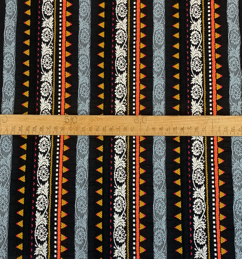 Our striking multi-coloured poncho/Inca stripe fabric is a vivid blend of tradition and contemporary style. With its 150cm width, this cloth offers generous dimensions for all your crafting and furnishing needs.